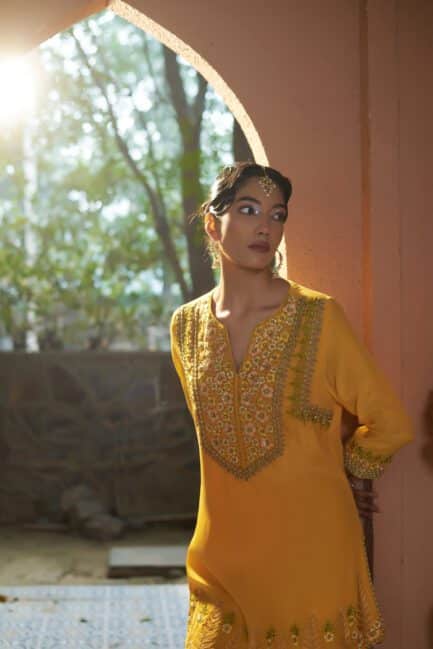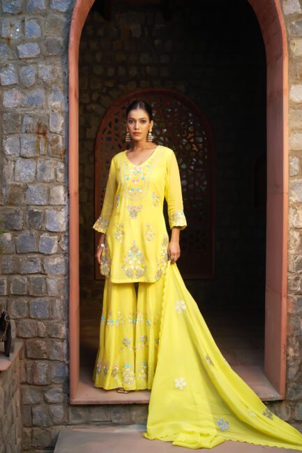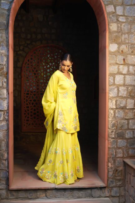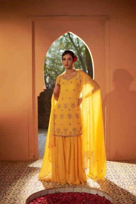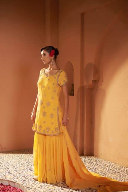₹ 39,500.00Marigold Yellow Sharara Suit Set