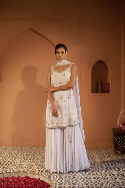 ₹ 32,500.00Clam Shell Applique Sharara Suit Set