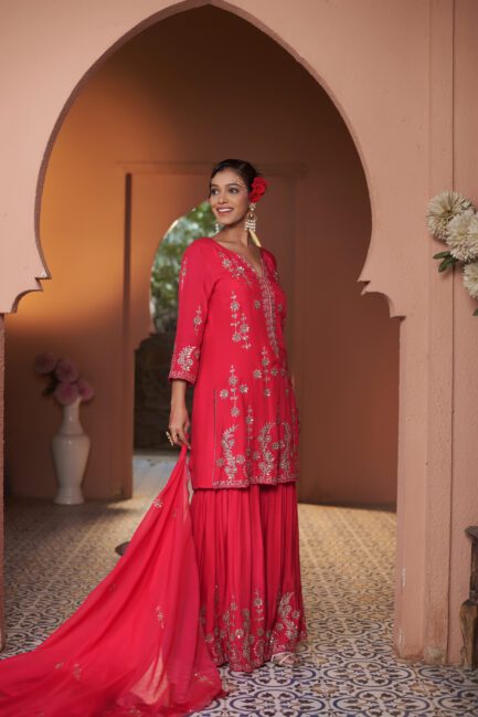 ₹ 24,500.00Debian Red Sharara Suit Set