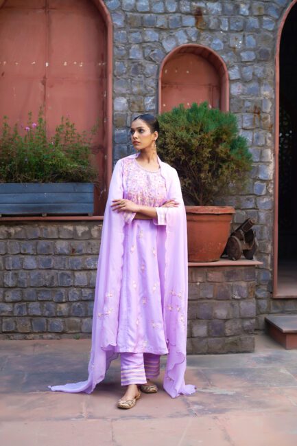 ₹ 38,500.00Pale Lilac Flora Kurta Set