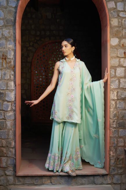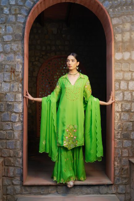 ₹ 38,500.00Summer Green Sharara Suit Set