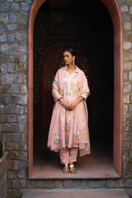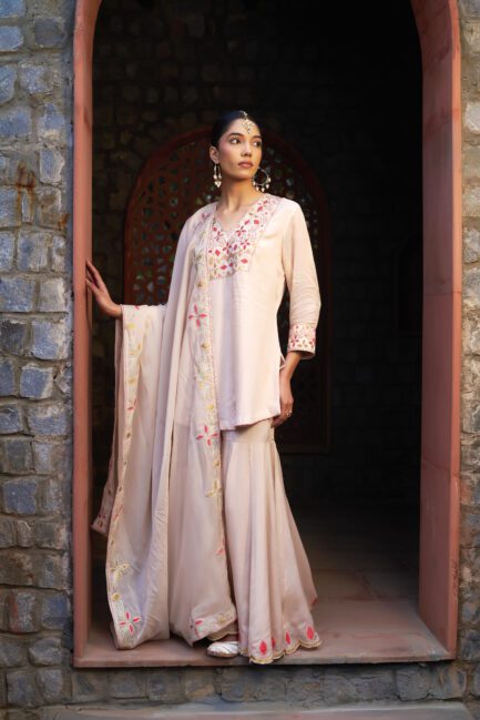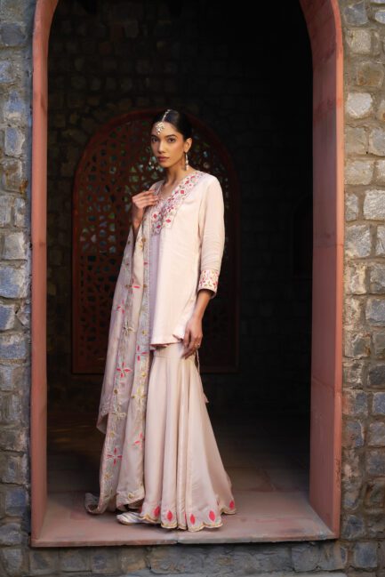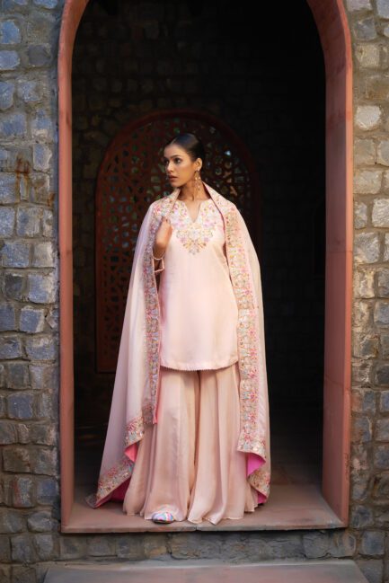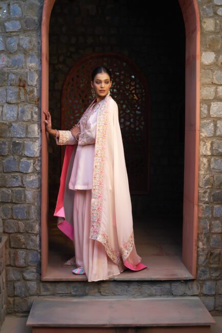 ₹ 24,500.00Pale Pink Applique Sharara Suit Set